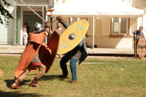 Tout au long de la journée au Celtifest, nous avons proposé des démonstrations et répondu aux nombreuses questions du public curieux. Nous avons présenté les techniques artisanales utilisées par nos ancêtres, notamment le travail de la laine, du cuir, de l’ambre et du verre. Nous avons également abordé des sujets souvent méconnus comme les pratiques de l’hygiène et de la cosmétique chez les Gaulois, afin de déboulonner quelques clichés tenaces. Bien entendu, les démonstrations de duels gaulois ont attiré petits et grands, ravis de découvrir les compétences martiales de ces anciens guerriers.