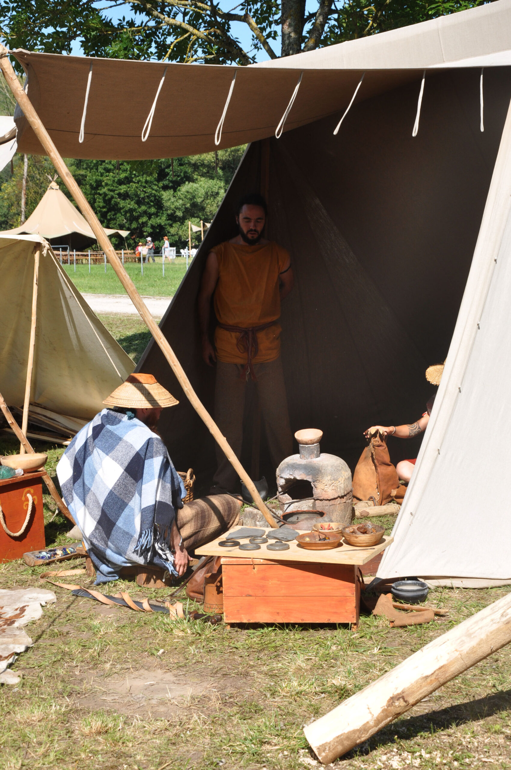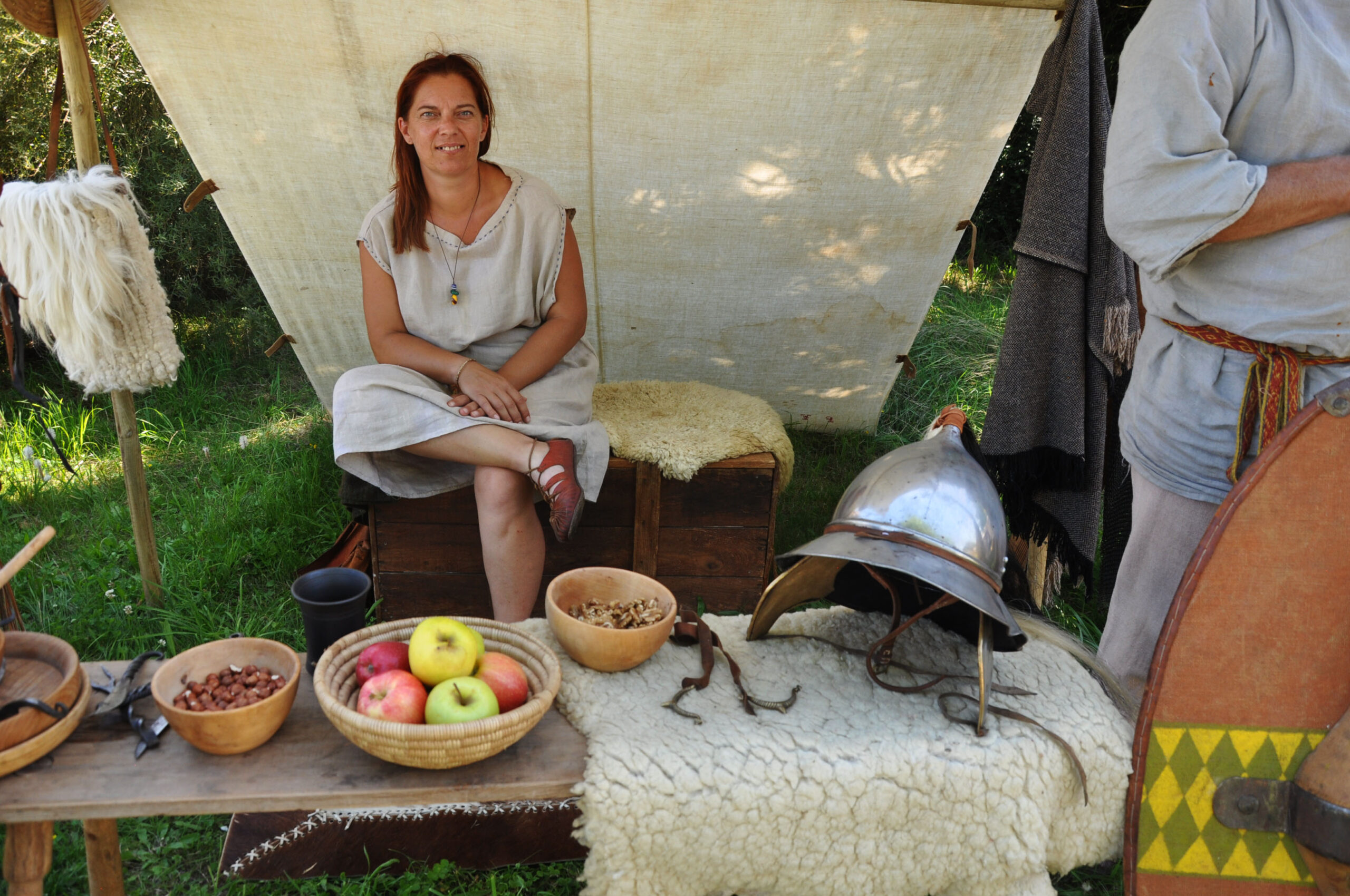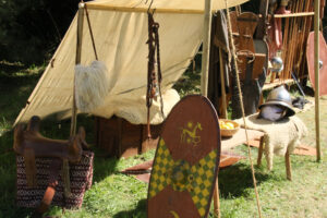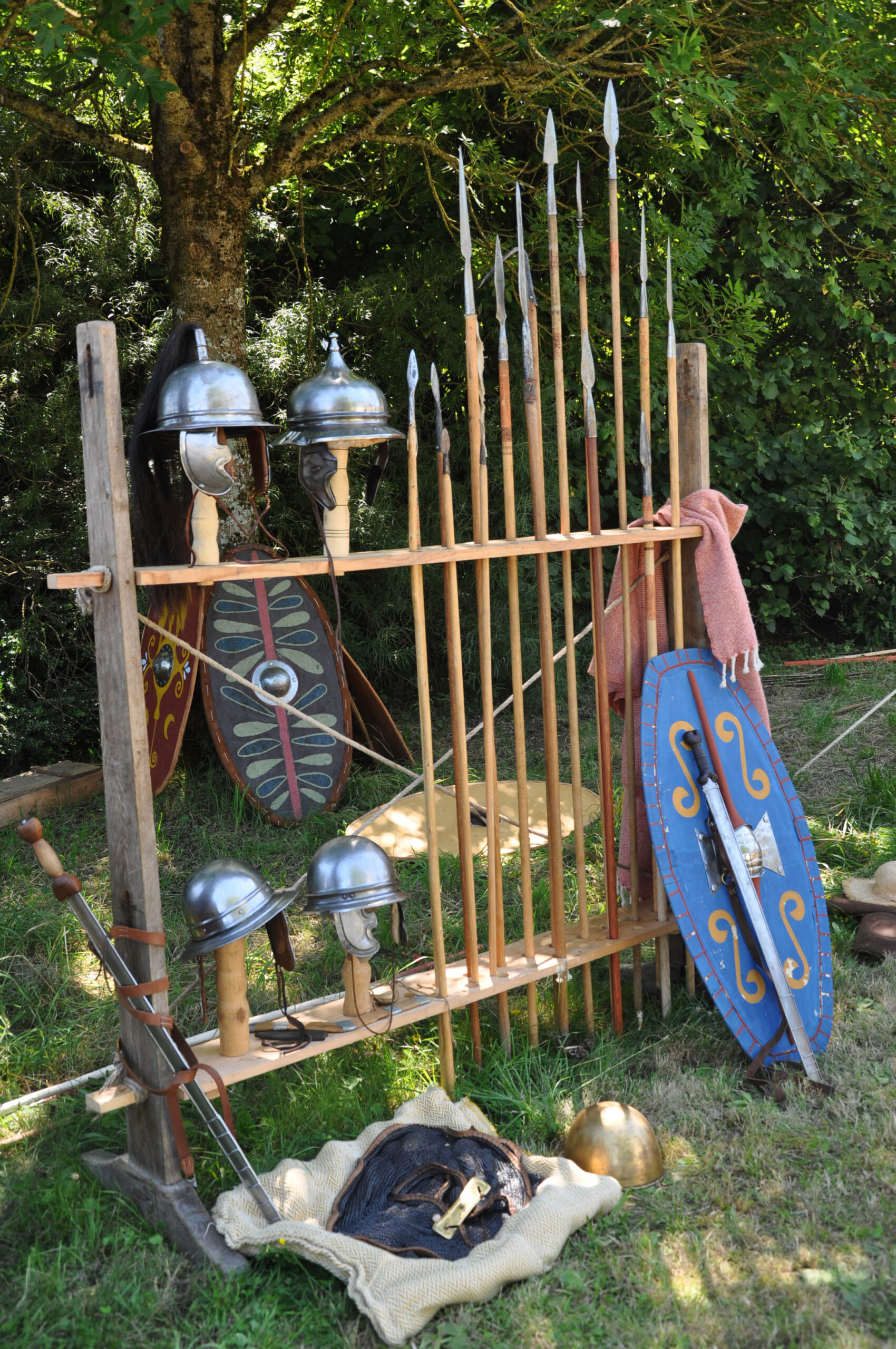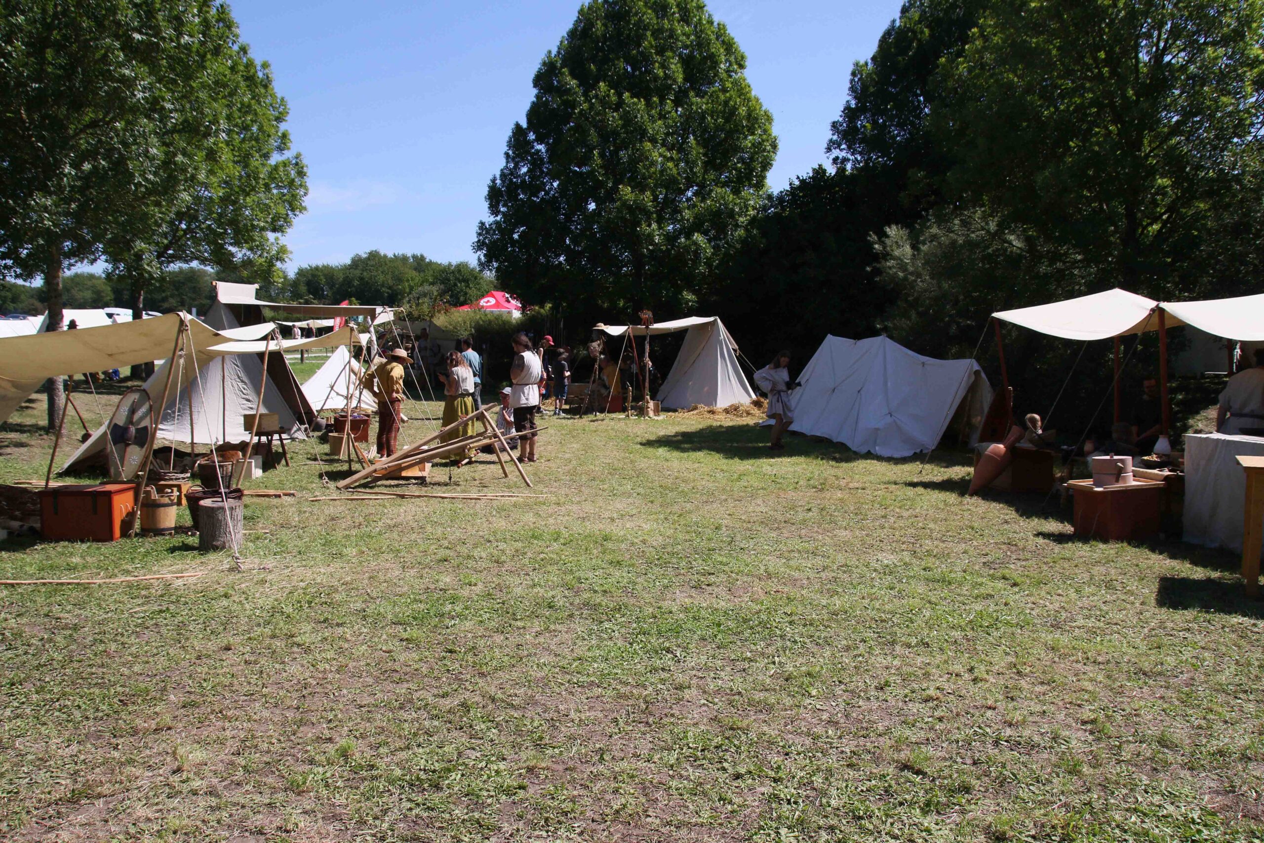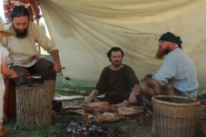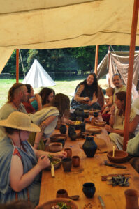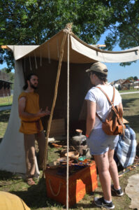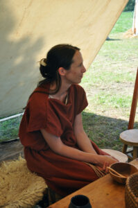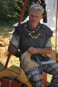 Tout au long du week-end, nous avons eu le plaisir d’accueillir de nombreux visiteurs autour de nos ateliers d’artisanat. Ils ont pu découvrir et échanger avec nous sur le travail de la laine, l’alimentation au quotidien, l’armement et la cavalerie, la vie en société, ainsi que sur le travail du cuir, du verre, du bois et de la forge. Ces démonstrations concrètes ont suscité une grande curiosité, permettant d’expliquer de manière vivante et interactive des savoir-faire hérités de l’Antiquité.