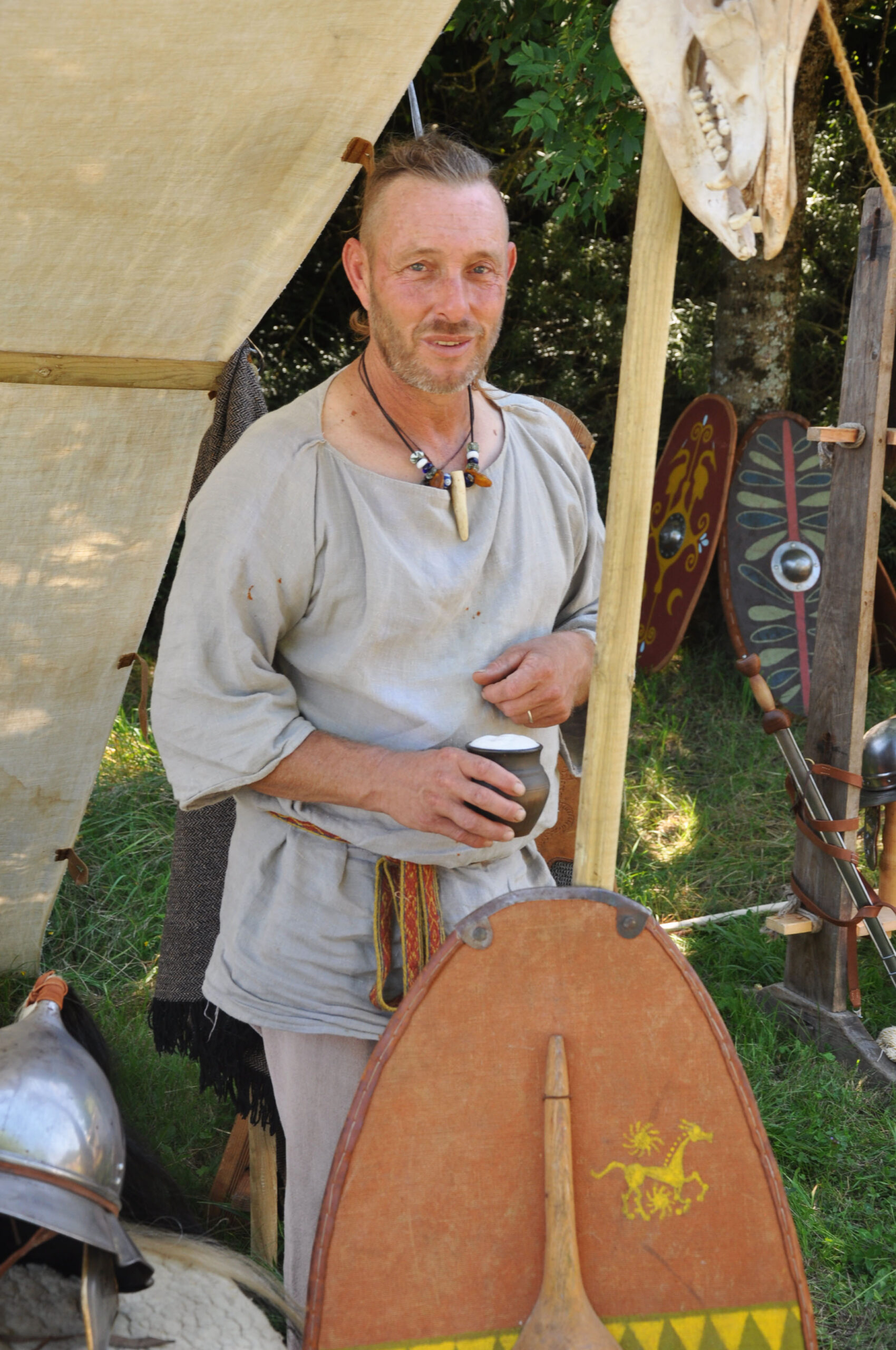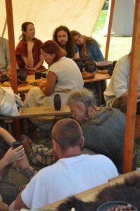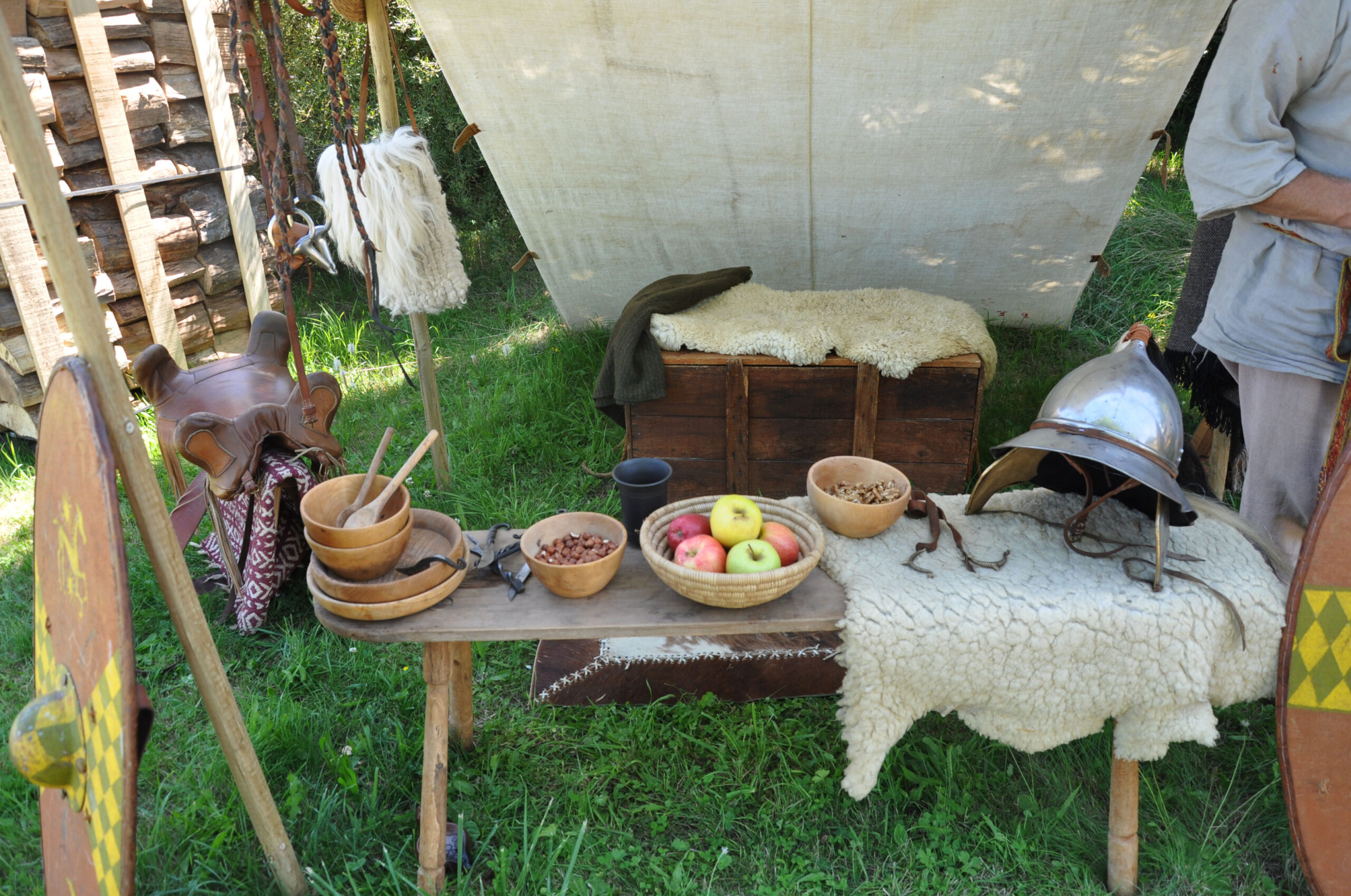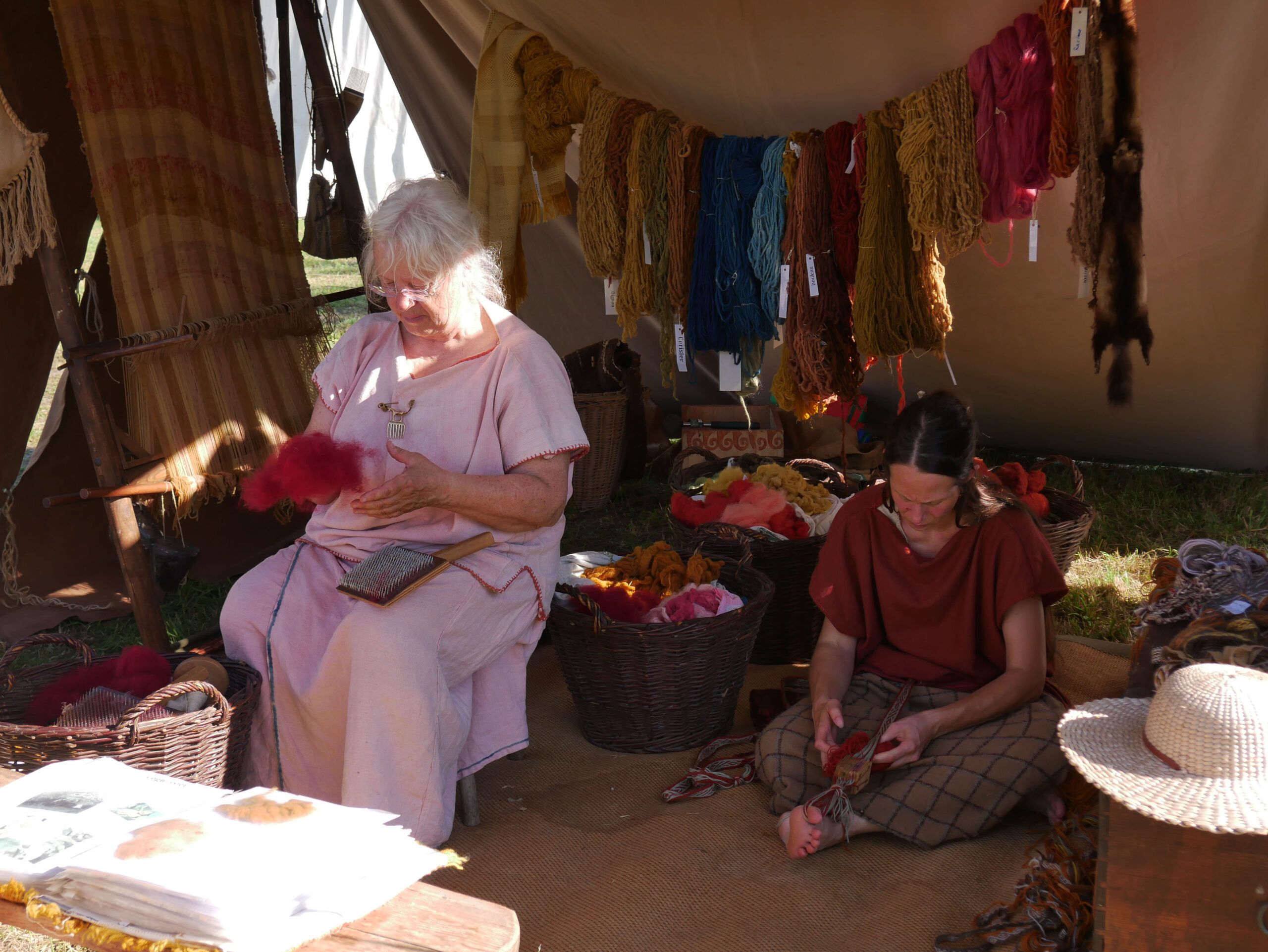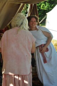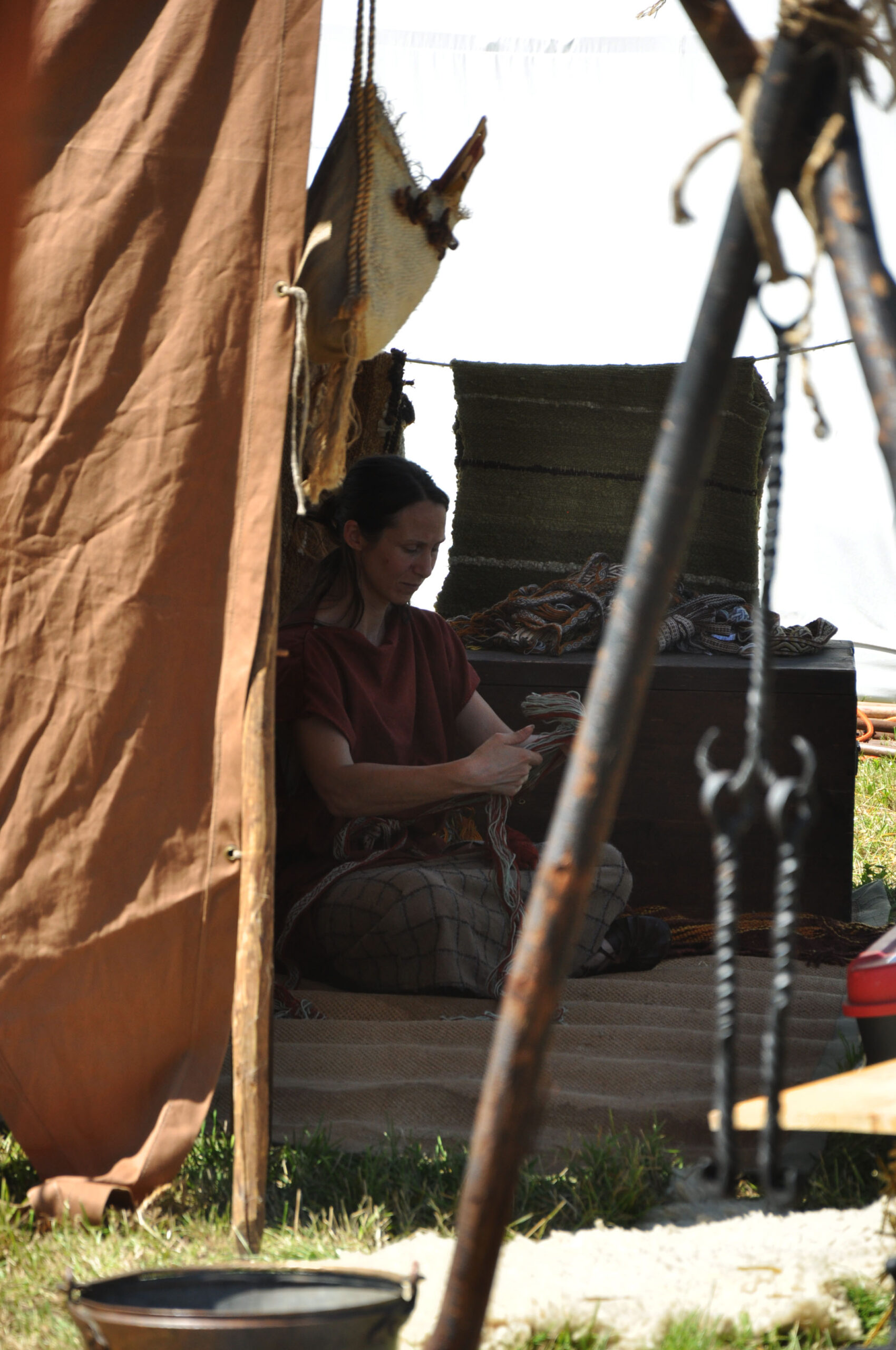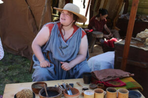 Tout au long du week-end, nous avons eu le plaisir d’accueillir de nombreux visiteurs autour de nos ateliers d’artisanat. Ils ont pu découvrir et échanger avec nous sur le travail de la laine, l’alimentation au quotidien, l’armement et la cavalerie, la vie en société, ainsi que sur le travail du cuir, du verre, du bois et de la forge. Ces démonstrations concrètes ont suscité une grande curiosité, permettant d’expliquer de manière vivante et interactive des savoir-faire hérités de l’Antiquité.