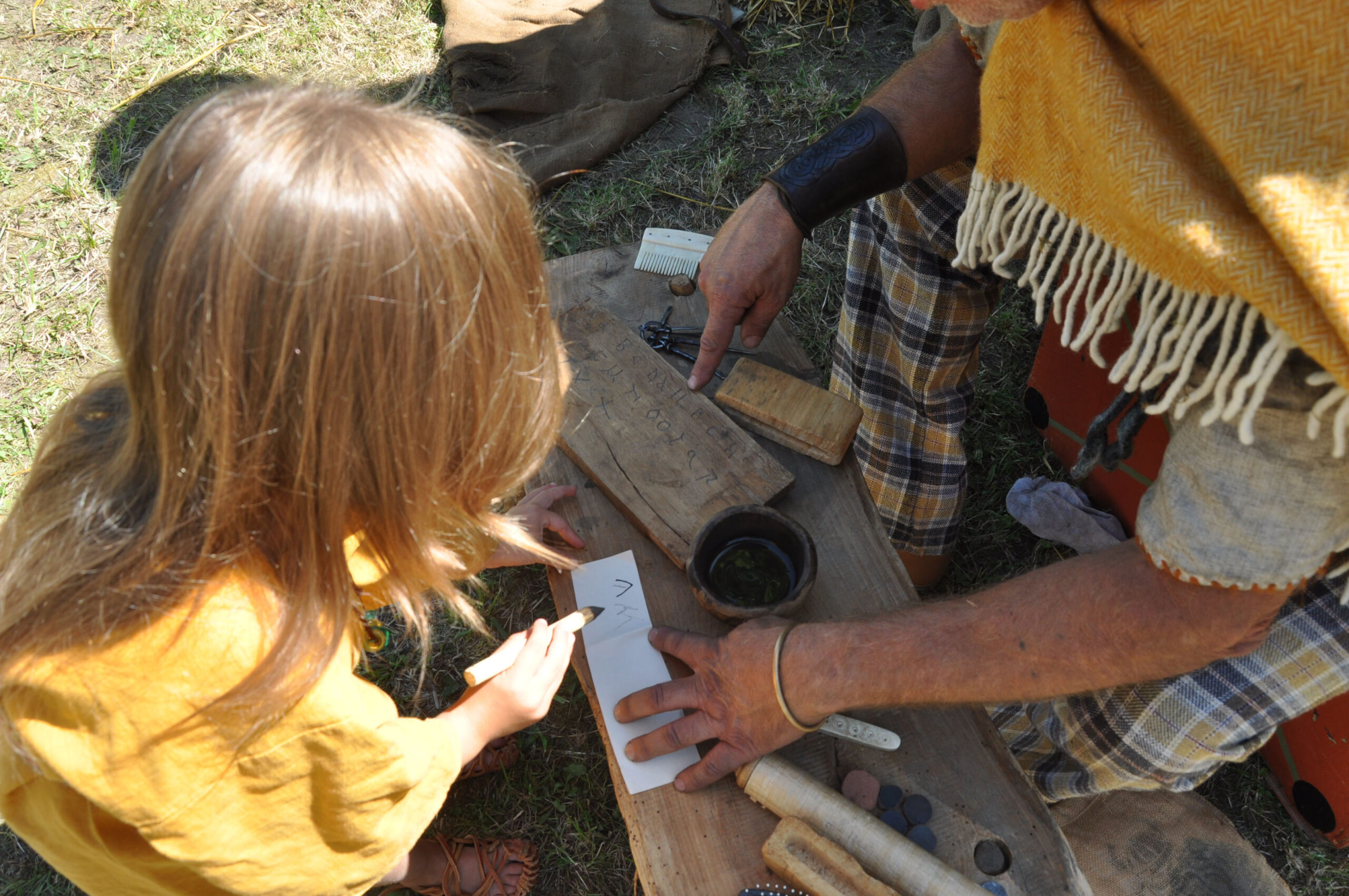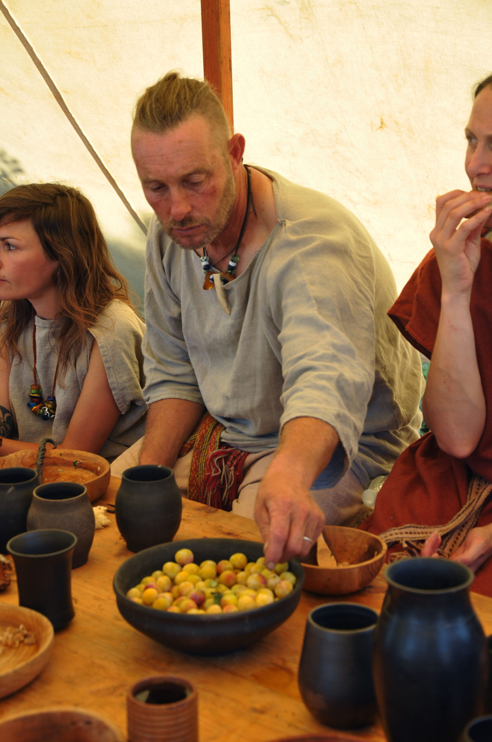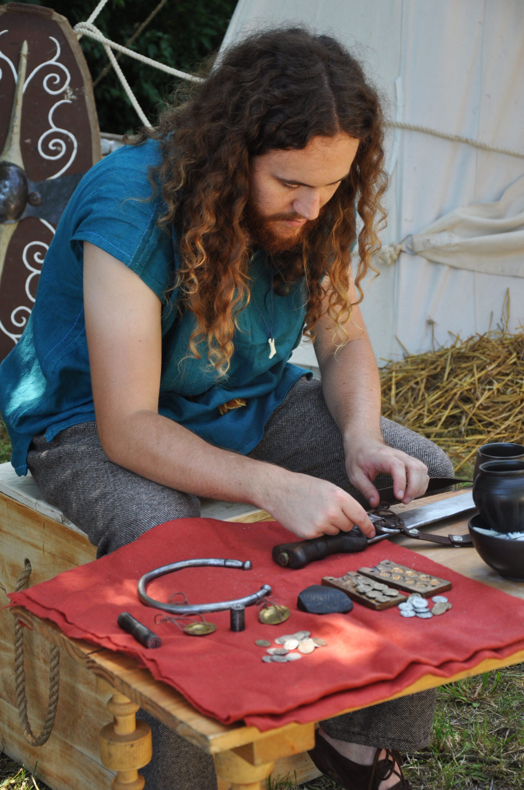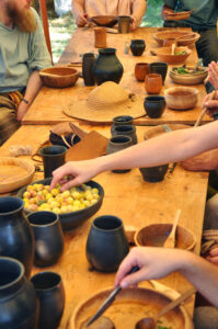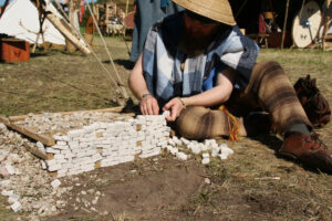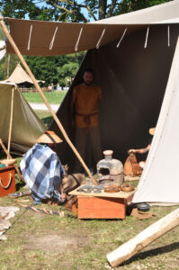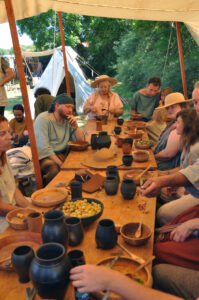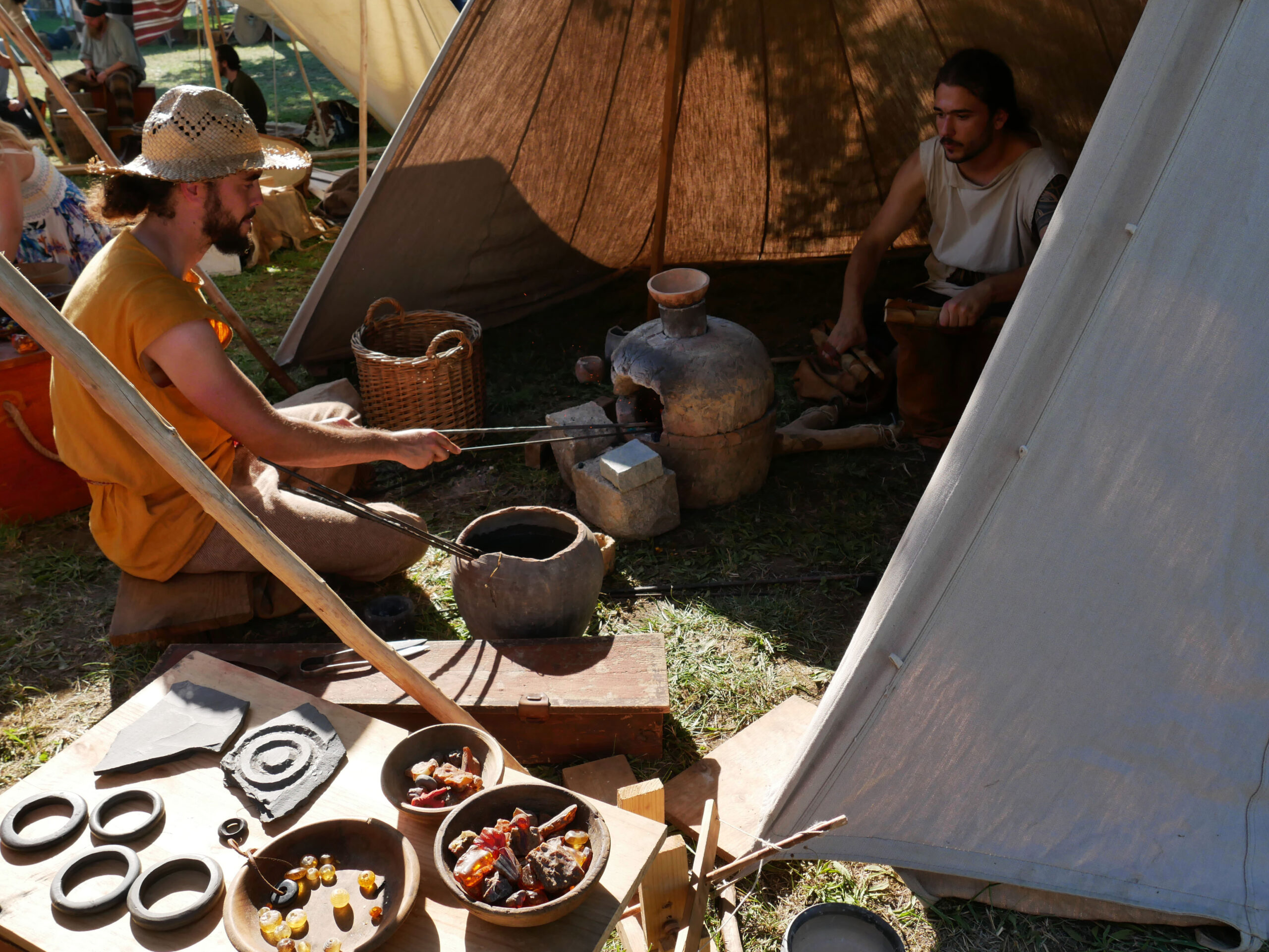Tout au long du week-end, nous avons eu le plaisir d’accueillir de nombreux visiteurs autour de nos ateliers d’artisanat. Ils ont pu découvrir et échanger avec nous sur le travail de la laine, l’alimentation au quotidien, l’armement et la cavalerie, la vie en société, ainsi que sur le travail du cuir, du verre, du bois et de la forge. Ces démonstrations concrètes ont suscité une grande curiosité, permettant d’expliquer de manière vivante et interactive des savoir-faire hérités de l’Antiquité.