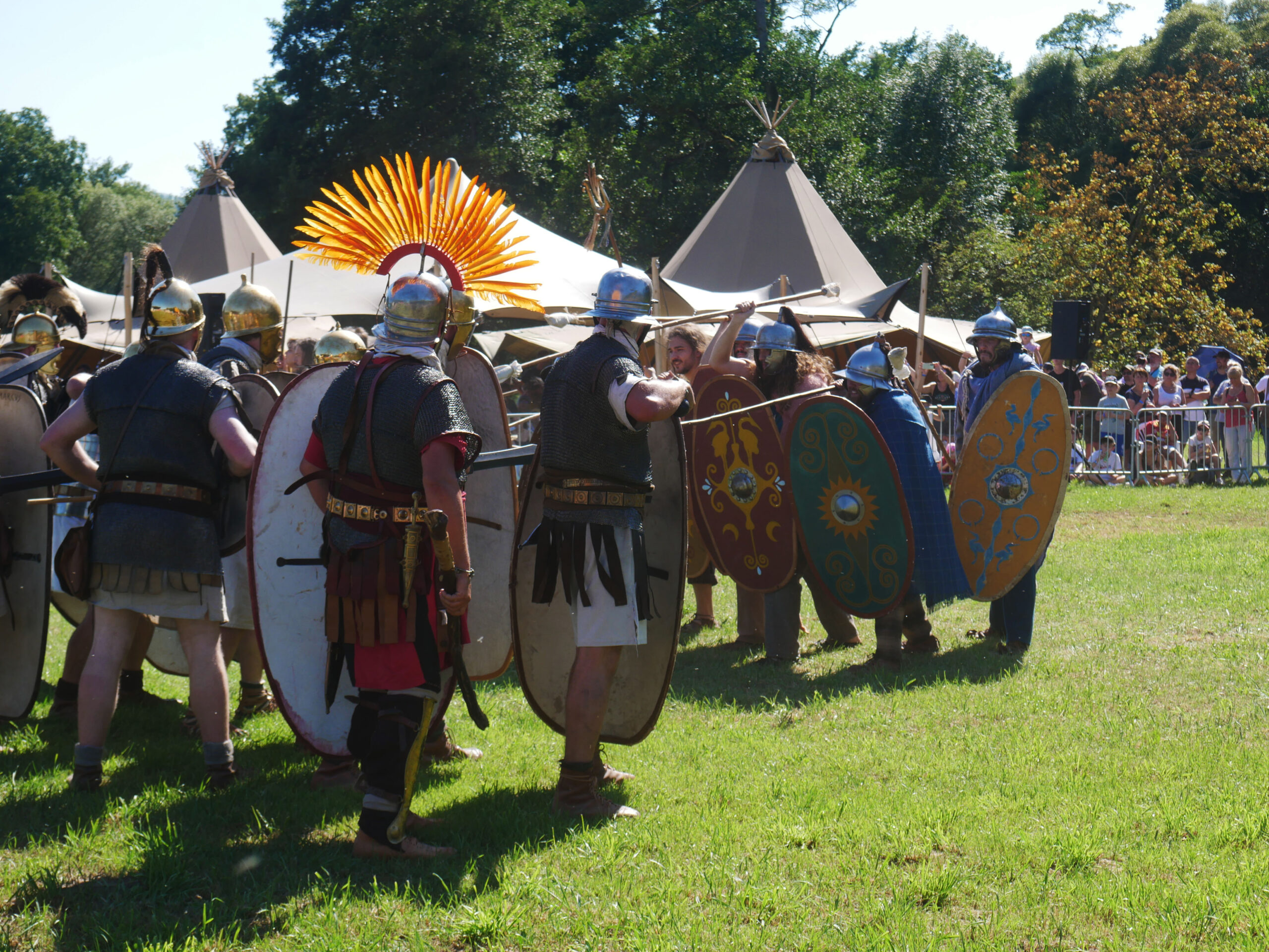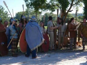 Moment fort de Vita Romana, nous avons également participé à la reconstitution de batailles face aux troupes romaines. Ce spectacle, inspiré des affrontements de la Guerre des Gaules, a marqué les esprits par son intensité. Pour nous, comme pour le public, il s’agit d’un instant inoubliable, qui donne chair à une période essentielle de notre histoire.